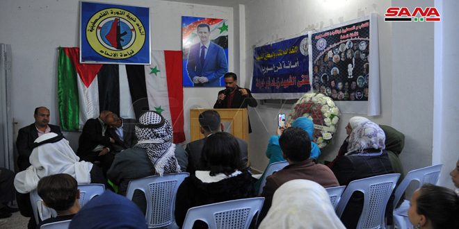 احتفاء بأعياد تشرين والتصحيح المجيد أقام اتحاد الكتاب الفلسطينيين ملتقى أبو خولة الأدبي بالتعاون مع اتحاد شبيبة الثورة الفلسطيني بالحسينية مهرجاناً شعرياً وأدبياً في مقر الفرقة الحزبية بالمنطقة.