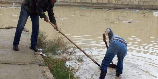 وفي جديدة الوادي بدأت صباح اليوم آليات المجلس البلدي وكوادره الفنية بالتعاون مع الفعاليات الأهلية بإزالة مخلفات السيول من المنطقة وفق رئيس المجلس تيسير موازيني.