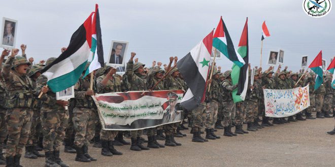 وألقى قادة الوحدات والمنشآت العسكرية كلمات أكدوا فيها أن الحركة التصحيحية أسهمت بشكل فاعل في تعزيز دور سورية ومكانتها بين الأمم حتى غدت رقماً لا يمكن تجاوزه وحصناً منيعاً في مواجهة المخططات والمشاريع التآمرية الصهيوأمريكية مشددين على أن سورية اليوم ماضية بكل اقتدار لاستعادة استقرارها والحفاظ على كرامة أبنائها والاستمرار في مواجهة الإرهاب وإسقاط مخططات داعميه وتطهير كامل الجغرافيا السورية من رجس الإرهاب ورعاته.