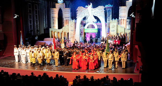 الفنان هادي بقدونس أدى على الة الكمان بشكل إفرادي وبمرافقة الأوركسترا نشيد /في سبيل المجد والأوطان/ لتعزف الفرقة بعدها أغنية الفنان موفق بهجت بعنوان /عزي وبلادي سورية/ بينما أدى الفنان محسن غازي أغنيته /ومشرعات بوابها/ التي قدم فيها غازي روح التراث السوري بطريقة فنية مزجت بين الحداثة والأصالة من حيث كلمات الأغنية واللحن الموضوع لها.