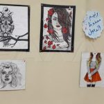 الطالبة ميلودي الملحم المشاركة بـ 26 لوحة منها بموضوعات متنوعة بين طبيعة صامتة وبورتريه وفن الماندالا بألوان المائي وزخارف وفحم عبرت عن فرحها بالمشاركة واطلاع الآخرين على تجربتها وموهبتها.