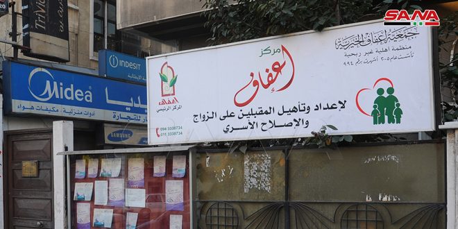 قبل سبع سنوات ومن خلال فريق تطوعي عملت “جمعية إعفاف الخيرية” بدمشق على إطلاق مركز متخصص لتوعية الشباب والفتيات المقبلين على الزواج وتثقيفهم بحقوق الزوجين وسبل الوقاية من المشاكل الأسرية وخطورة الطلاق ليعتمد رسميا كأول مركز مختص بالإصلاح الأسري ويحقق حسب القائمين عليه الصلح لنحو 35 بالمئة من الحالات الواردة إليه.