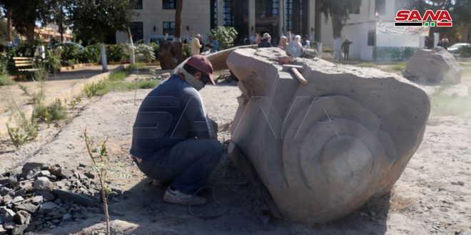 وذكرت عضو المكتب التنفيذي لمحافظة دير الزور الدكتورة سهام الخاطر أن “الملتقى الذي تقيمه محافظة دير الزور يعد الأول من نوعه الذي يقام في المحافظة ويشارك به 12 فنانا من مختلف محافظات القطر سيقومون بإنجاز 10 منحوتات بازلتية تتحدث عن انتصار سورية عموما ودير الزور على وجه الخصوص مع محاكاة للتراث والطبيعية والتاريخ سيتم بعد الانتهاء من إنجازها بتوزيعها على ساحات ودوارات المحافظة”.