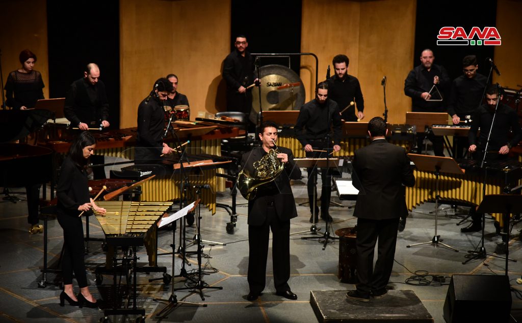 وعزف ما يقارب 25 موسيقيا من طلاب وخريجي وأساتذة المعهد العالي للموسيقا برنامج الأمسية بمشاركة عزف منفرد لكل من عازف الهورن فؤاد شلغين والكمان المثنى علي.