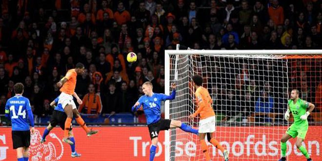 أحرز جورجينيو فينالدم ثلاثة أهداف ليقود هولندا التي ضمنت قبل ذلك التأهل لبطولة أوروبا 2020 لكرة القدم الفوز بخماسية نظيفة على إستونيا في ختام منافسات المجموعة الثالثة على استاد يوهان كرويف أرينا اليوم.