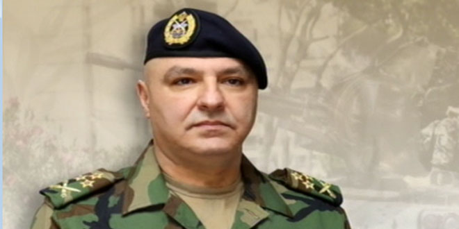 أكد قائد الجيش اللبناني العماد جوزف عون أن الجيش اللبناني وفي ظل هذه الظروف الدقيقة التي تفرض عليه قام بواجبه بكل تضحية ووفاء وأثبت أن المؤسسة العسكرية هي المظلة الجامعة لكل أبناء الوطن.
