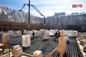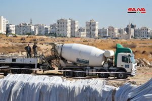 بدأت اليوم أعمال الصب البيتوني لأساسات أول مقسم حصل على رخصة بناء من قبل محافظة دمشق في منطقة ماروتا سيتي جنوب شرق المزة بدمشق.