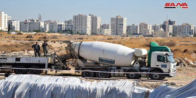 دمشق-سانا بدأت اليوم أعمال الصب البيتوني لأساسات أول مقسم حصل على رخصة بناء من قبل …