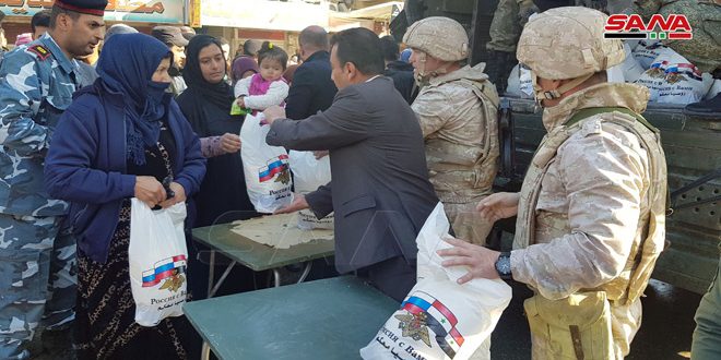 وأكد المشرف على عمليات التوزيع العقيد الكسندر شوف في تصريح لمراسل سانا أن “المساعدات المقدمة تأتي في إطار إنساني لتقديم يد العون للأهالي المهجرين الموجودين في مدينة الحسكة وتعبيراً عن عمق الصداقة التي تربط الشعبين السوري والروسي” مبيناً أن “المساعدات تتضمن 1000 حصة غذائية تشمل مواد تموينية مختلفة”.