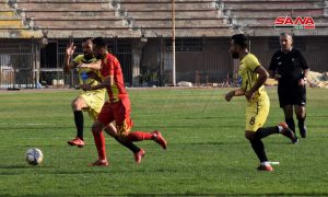 وسجل أهداف المباراة التي أقيمت على ملعب رعاية الشباب بحلب محمد الواكد “أربعة أهداف” أولها من ركلة جزاء في الدقائق 6و10و14و16 وورد السلامة في الدقيقة 91.