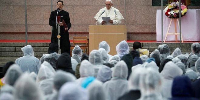 ونقل موقع روسيا اليوم عن البابا فرنسيس قوله في كلمة صباح اليوم بالحديقة العامة قرب النصب التذكاري في مدينة ناغازاكي اليابانية حيث ألقت الولايات المتحدة قنبلة ذرية عام 1945 إن “هذا المكان يشكل شاهدا على النتائج الكارثية والبيئية لأي هجوم نووي ويجعلنا ندرك بشكل أفضل الأهوال التي يمكن أن يلحقها البشر ببعضهم البعض”.