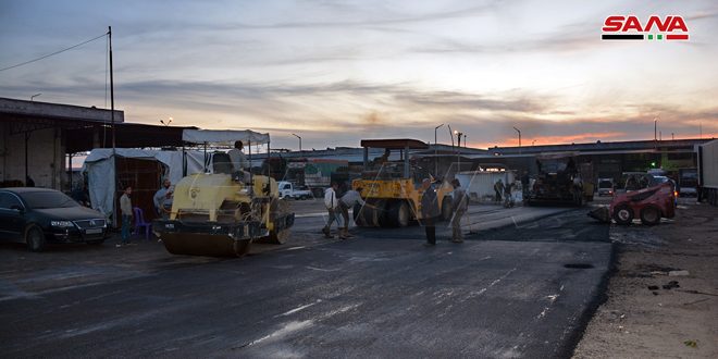 ولفت إلى أن الأعمال تسير بالتوازي مع إقامة شبكة التصريف المطري للحيلولة دون تجمعات المياه والاختناقات وخاصة خلال فصل الشتاء مع أعمال تعبيد جميع الساحات والطرق في السوق بمواصفات فنية جيدة إضافة إلى صيانة شبكات الإنارة ولاسيما في ساحة الحمضيات مبينا أنه سيتم الانتهاء من الأعمال خلال 15 يوما في حال ساعدت الظروف الجوية.