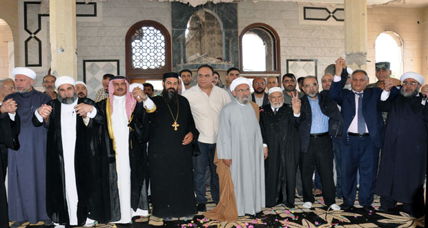 بدوره أكد مدير أوقاف حمص عصام المصري ضرورة أن يتابع رجال الدين دورهم المهم في مواجهة الفكر التكفيري والظلامي ونشر التوعية بين جميع فئات المجتمع مضيفا.. ” إن دور رجال الجيش العربي السوري يتمحور في الدفاع عن الوطن بالسلاح فيما يتمحور دور رجال الدين بالدفاع عنه بالكلمة”.
