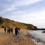 ثلاثة كيلومترات اجتازها المشاركون على طريق ترابي محاذ للشاطئ البحري تتمايل على جنباته أشجار من الصنوبر والخرنوب ويعبق برائحة الأرض والنباتات البرية وسط حالة من التأمل والدهشة أمام لوحة فنية تزداد روعتها كلما اقتربوا من الشاطئ الرملي باتجاه مغارة المقاصب.