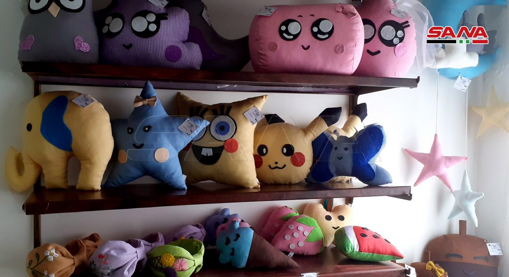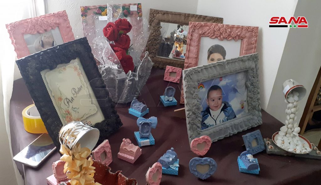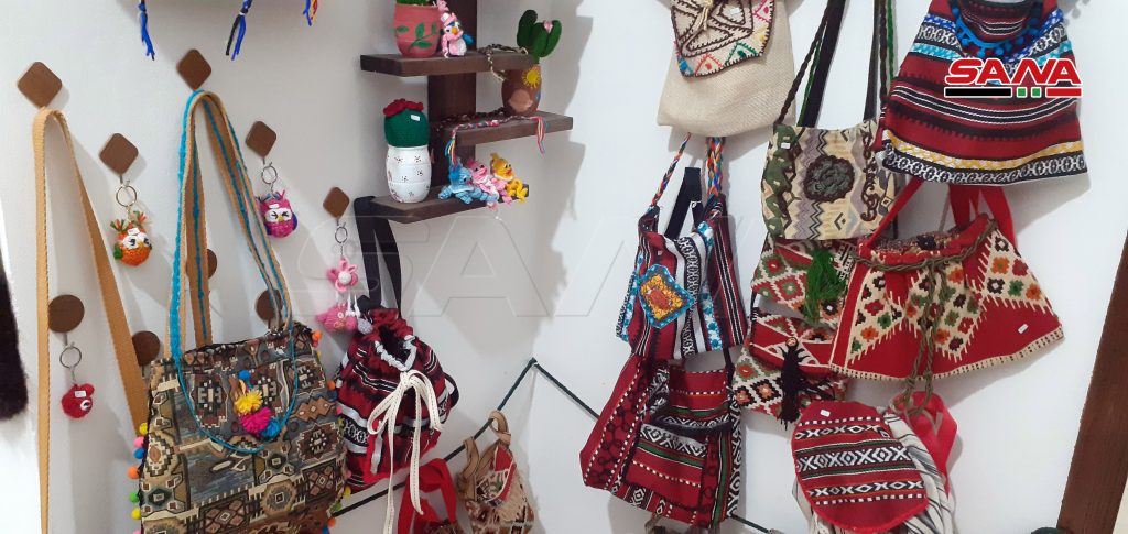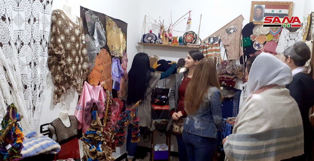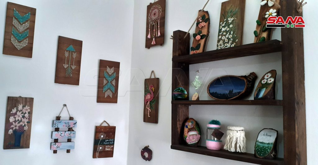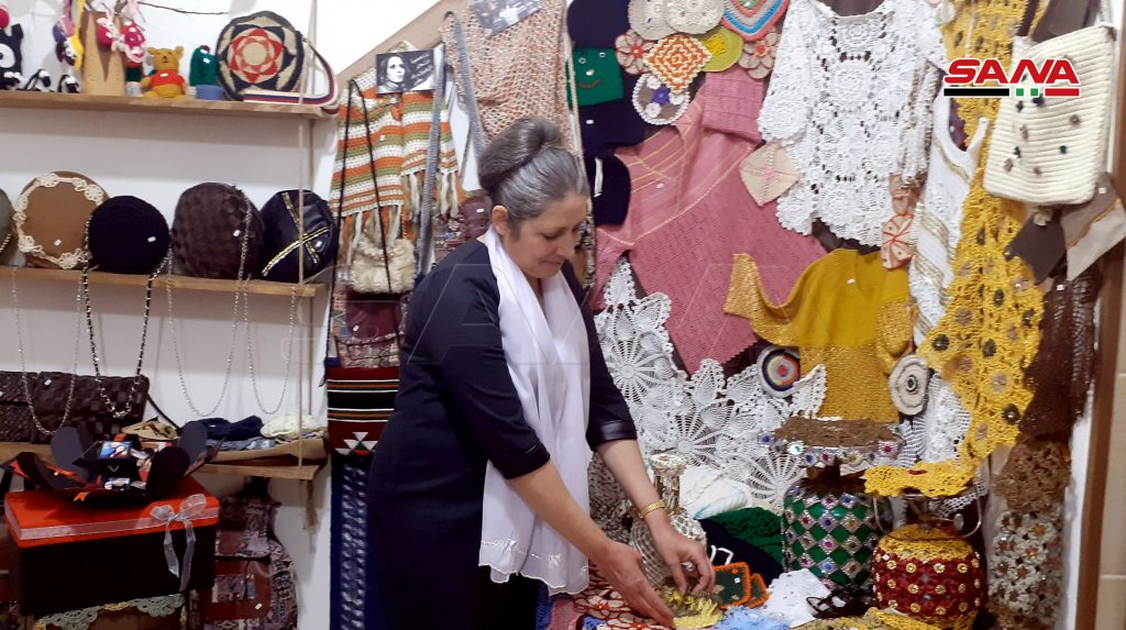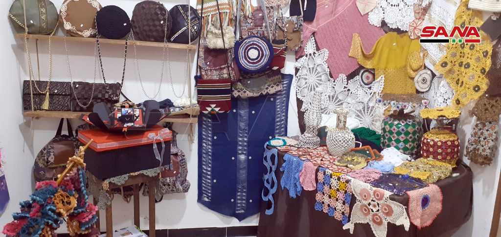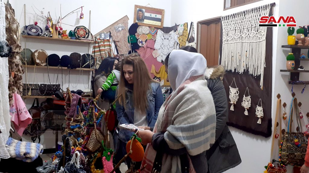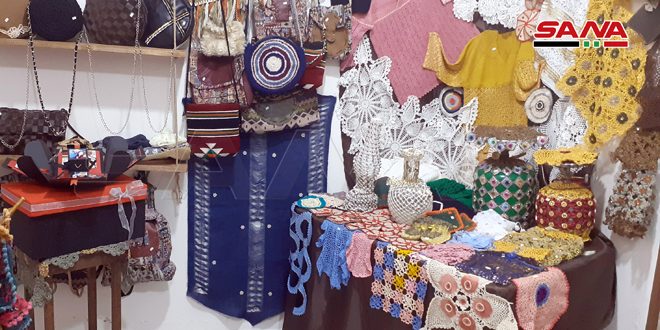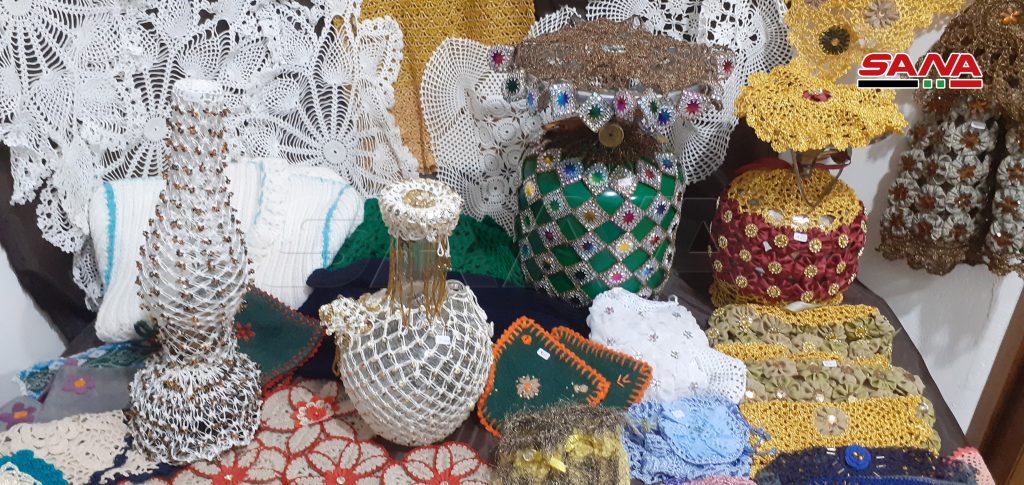 13 سيدة من المحترفات بالأعمال والمشغولات اليدوية جمعهن شغفهن بالفن لتأسيس معرض بيت الحرف الدائم بالسويداء للتعريف بمنتوجاتهن المتنوعة.