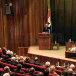 وألقى عضو مجمع اللغة العربية الدكتور عيسى العاكوب كلمة المشاركين في المؤتمر قال فيها.. إن “المشاركين في أعمال المؤتمر من البلدان العربية ومن سورية يشعرون بحس المسؤولية إزاء تقديم كل ما يسهم بمعالجة كل نقاط الضعف التي يستشعرونها بجسد تعليم العربية وتعلمها في مستويات ما قبل التعليم الجامعي وفي أقسام اللغة العربية بجامعاتنا ومؤسسات تعليم اللغة لغير الناطقين بها معتبرا أن الارتقاء بمناهج تعليم العربية وطرائق تدريسها خطوة راسخة باتجاه تحقيق مجتمع البحث العلمي والتقاني.