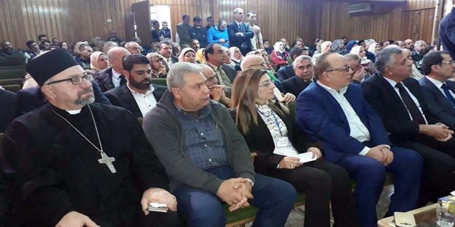 أما رئيس اللجنة العلائية أحمد غريب فألقى الضوء على ما قدمته اللجنة والعديد من المثقفين السوريين من خلالها عبر ندوات ومحاضرات ومعارض خلال سنوات طويلة.