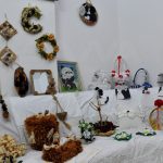 السيدة إخلاص تميزت بأعمالها اليدوية التي تعتمد على تدوير مخلفات البيئة إضافة إلى التطريز وشغل السنارة أكدت من جانبها أنها تفوقت بهذا العمل كونها تحبه رغم أنها لم تخضع لأي دورة حيث كانت الموهبة الأساس لإبداعها موضحة أنها تقوم بتدوير الأشياء وتحويلها إلى صمديات ومجسمات جميلة.