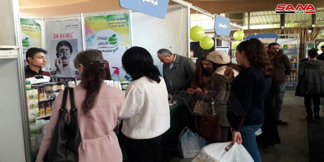 وأشار عمران الأسدي في جناح المواد الغذائية إلى أنه يتم بيع علبة المتة بأقل من السوق بنحو مئة ليرة فيما بين بشر العشا وكيل شركة للبسكويت أنه يتم البيع بهامش ربح بسيط دعما للاقتصاد الوطني.
