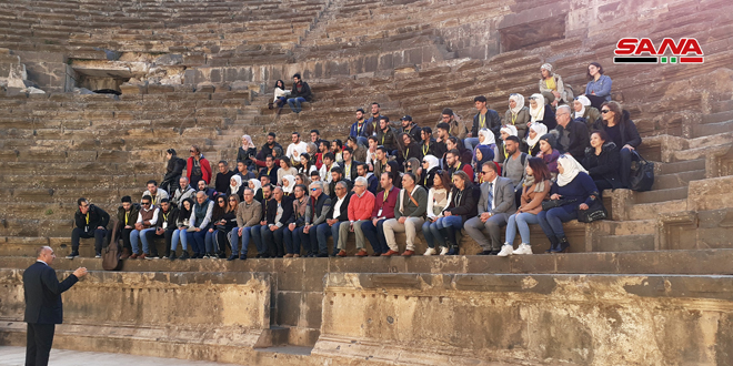 درعا-سانا وصلت اليوم إلى مدينة بصرى الشام الأثرية مجموعة سياحية من جنسيات مختلفة تضم