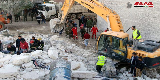 وأشار مراسل سانا في الموقع إلى أنه تم انتشال جثامين سبعة أشخاص جدد بعد انتهاء فرق الانقاذ والدفاع المدني من رفع الانقاض ليرتفع عدد الضحايا الإجمالي إلى 12 شخصاً.