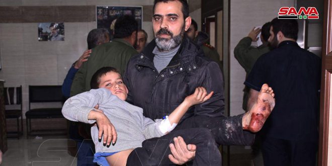 استشهد طفل وأصيبت والدته وشقيقاه بجروح نتيجة اعتداء المجموعات الإرهابية بقذيفة صاروخية على بلدة الوضيحي بريف حلب الجنوبي.