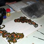 الورشة التي أقامتها مديرية ثقافة الطفل ضمن البرنامج الثقافي المرافق لمعرض كتاب الطفل الثاني علمت فيها المدربة رجاء مرشد الطلاب تفاصيل هذا الفن عن قرب والتدريب عليه بالممارسة بهدف تعريفهم بتراث بلدنا العريق وتنمية مواهبهم وتدريبهم على الصبر والدقة في العمل.