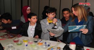 دمشق-سانا في ورشة عمل للفن العجمي تجمع عدد من طلاب المدارس في مكتبة الأسد ليتعلموا …