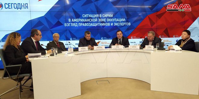 استنكر عدد من الخبراء الروسيين في ندوة عقدت في العاصمة موسكو اليوم وجود قوات احتلال أمريكية وأخرى تركية على الأراضي السورية مؤكدين أن هذا الاحتلال يخلق مشكلات كبيرة للشعب السوري وضرورة مواصلة فضح الجرائم التي تقوم بها هذه القوات ولا سيما في مخيم الركبان.