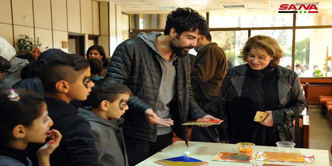 التقى الفنان الشاب لجين اسماعيل مع مجموعة من الأطفال اليوم ضمن فعاليات معرض كتاب الطفل2 الذي تقيمه وزارة الثقافة في مكتبة الأسد الوطنية ودار بينهم حوار أثناء تشاركهم بنشاط للرسم والتلوين.