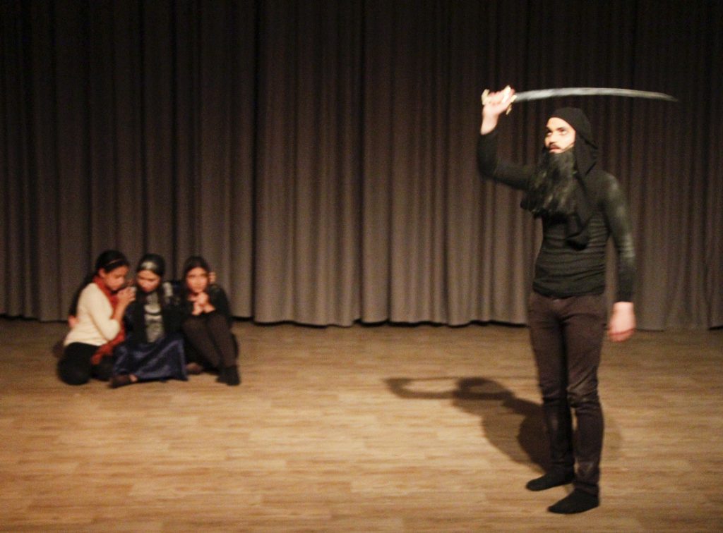 أحداثه تدور في ملجأ لمبنى يضم مزيجاً من البشر في إسقاط على المجتمع السوري وتعدد مكوناته كما يطرح العرض الذي قدم بالتعاون مع معهد تشيللو للفنون موضوع الشباب المغرر بهم من خلال شخصية “طارق” الشاب المثقف الذي أجبر على حمل السلاح في وجه أبناء بلده وانتهى به الحال في النهاية إلى الندم والأسف.