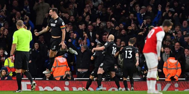 حقق برايتون آند هوف ألبيون فوزه الأول على الإطلاق في ملعب أرسنال وغلبه بهدفين مقابل هدف في الدوري الإنكليزي الممتاز بكرة القدم.