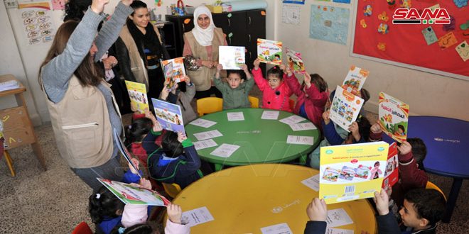 مجموعة من القصص والبروشورات حول أهمية القراءة تم توزيعها على الأطفال ضمن الفعالية التي نفذت بدمشق في روضة وزارة التربية ومدرسة علي الجزائري بالمزة بإشراف اختصاصيين من دائرة البحوث والدراسات بالمركز الوطني إضافة لإقامة مجموعة من الأنشطة للأطفال المستهدفين.