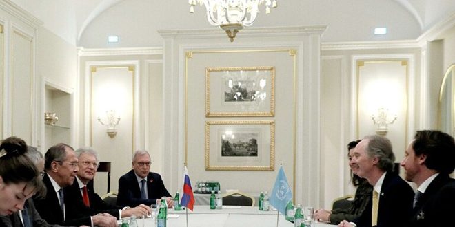 بحث وزير الخارجية الروسي سيرغي لافروف اليوم مع المبعوث الخاص للأمين العام للأمم المتحدة إلى سورية غير بيدرسون الأوضاع في سورية وضرورة تواصل الحوار السوري السوري دون أي تدخل خارجي.