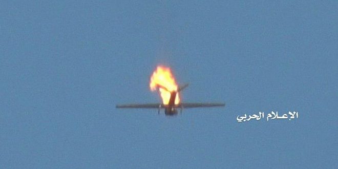 أسقطت الدفاعات الجوية للجيش اليمني واللجان الشعبية اليوم طائرة استطلاع تابعة لقوات العدوان السعودي في محور جيزان.