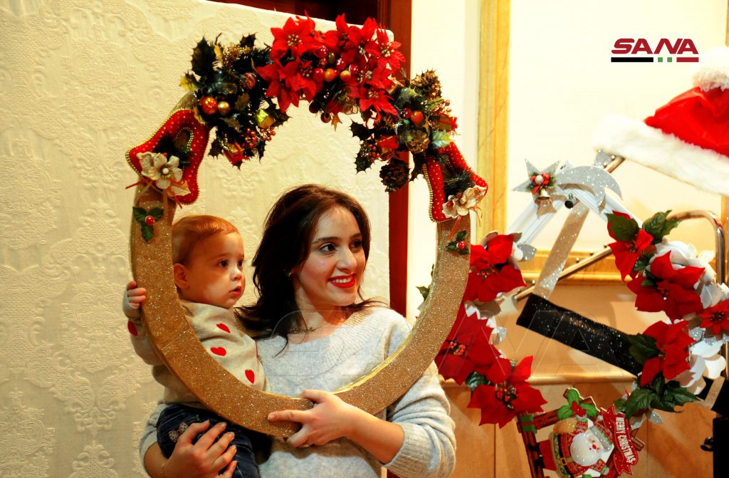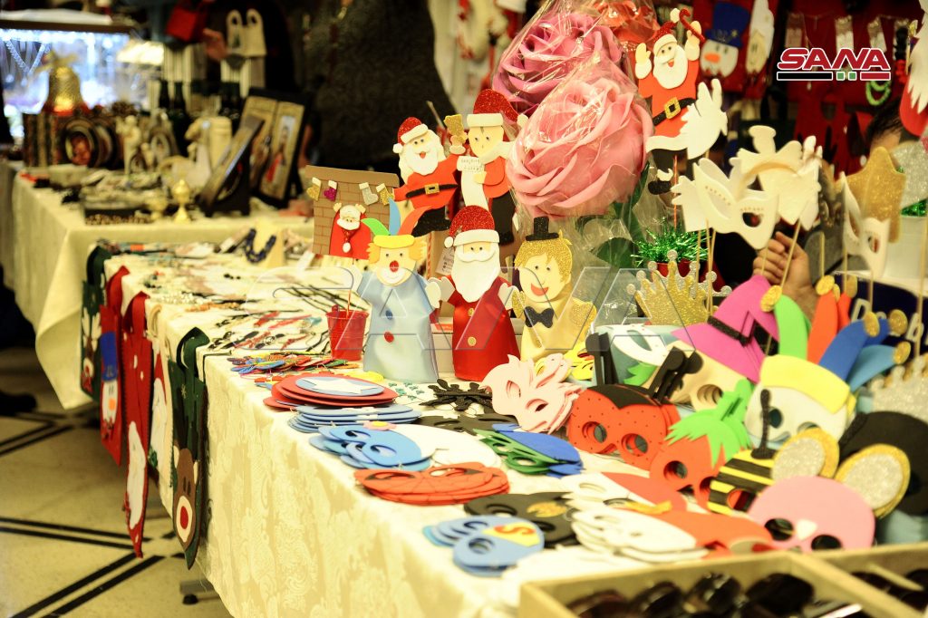 منتجات وأشغال يدوية وصوفية وتحف خشبية وأيقونات ولوازم زينة للأشجار من مختلف الأشكال والألوان وألبسة وحلويات وأغذية متنوعة مع حضور مميز من مختلف الأعمار زين أجواء بازار الميلاد في كنيسة الصليب المقدس بدمشق.
