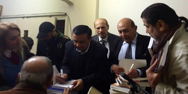 وألقى رئيس مركز ثقافي جرمانا منهال الغضبان نصا شعريا أيضا عبر فيه عن المآسي الإنسانية والاجتماعية التي يعيشها الإنسان في الوقت الراهن بسبب المؤامرات والفجائع والإرهاب.