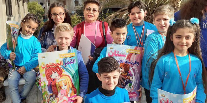 الفنان اسكندر عزيز أشار في كلمة إلى ضرورة الاهتمام بالأطفال وتحصينهم بالثقافة وخاصة أنهم مستقبل الوطن القادم بينما قدمت الكاتبة كنينة دياب قصة بعنوان “القمر المجنون” لتجسد قيما تربية مهمة في ذاكرة الطفل بأسلوب حكائي شائق.