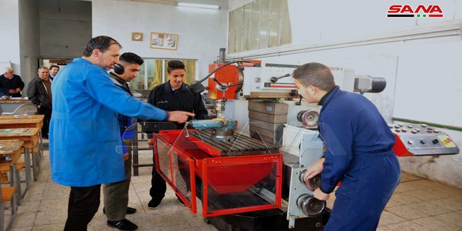 وبين المدرس في قسم التصنيع الميكانيكي والخراطة نشأت هنيدي أن الطالب يدرس المبادئ الأساسية للمهنة نظريا ويتدرب عليها بشكل عملي على مختلف الآلات بما يسهم في تأهيل جيل قادر على الانخراط بسوق العمل.