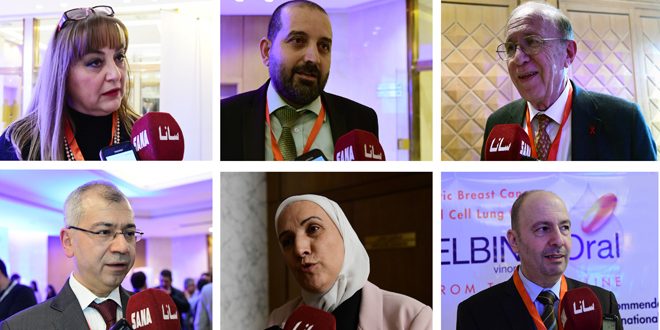 وتضمن المؤتمر محاضرات تخصصية ركزت على مستجدات علاج سرطانات الثدي والقولون والمستقيم والدماغ والدراسات الجينية الحديثة في الأورام الصلبة حيث لفت نقيب الأطباء الدكتور عبد القادر حسن إلى أهميته لجهة تبادل الخبرات ومواصلة تدريب وتأهيل طلاب الدراسات العليا منوهاً بالخبرات الوطنية المحلية التي توزاي العالمية واستمرت بالعمل رغم الظروف التي فرضتها الحرب الإرهابية على سورية.