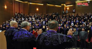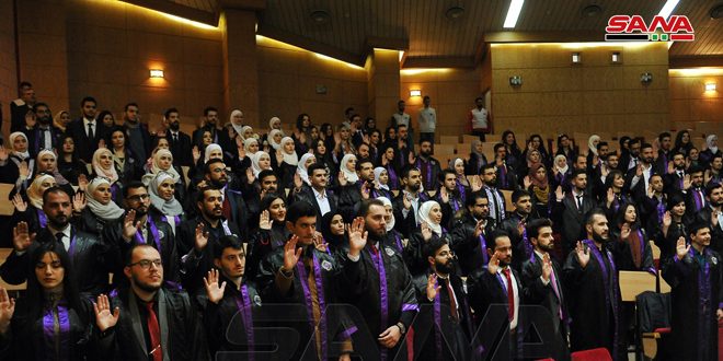 780 طالبا وطالبة احتفلت كلية الطب البشري في جامعة دمشق بتخريجهم اليوم على مدرج المؤتمرات بالكلية حيث أدى الخريجون القسم الطبي وأكدوا أنهم سيكونون أوفياء لواجباتهم المهنية من خلال اتباع أفضل السبل في علاج المرضى.