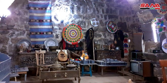 حول أهالي بصرى الشام بريف درعا بعض البيوت القديمة ذات النمط المعماري التراثي إلى متاحف ومعارض للتراث الشعبي تبرز المنسوجات التقليدية والأكلات التي تشتهر بها حوران.
