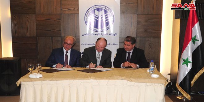 وقعت الهيئة العليا للبحث العلمي مع عدد من الباحثين اليوم عقود الدعم المالي لثلاثين مشروعاً بحثياً تطبيقياً في عشرة قطاعات تنموية بموازنة إجمالية تقدر بـ 425 مليون ليرة سورية وذلك في فندق أرميتاج بدمشق.