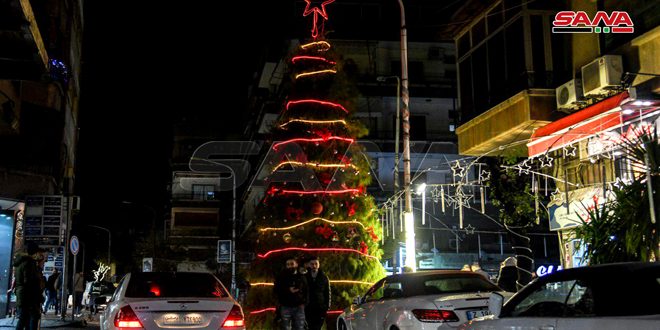 حمص-سانا تضمنت الفعالية الترفيهية التي أقيمت بحي الحميدية بحمص بمناسبة عيدي الميلاد ورأس السنة الميلادية …