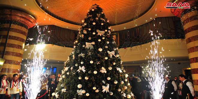 بمناسبة اقتراب عيد الميلاد المجيد أضيئت مساء اليوم شجرة الميلاد في فندق داما روز بدمشق في حفل تضمن تكريم عدد من أبناء الشهداء وعروضاً لفرقة “لونا” للغناء الجماعي.