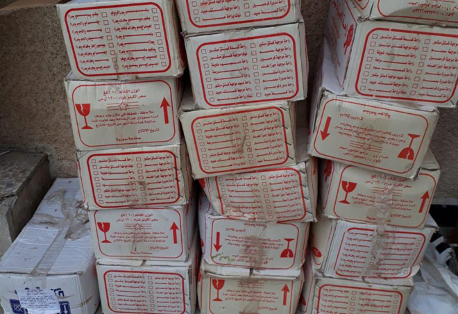 ضبطت عناصر مديرية التجارة الداخلية وحماية المستهلك في حمص مواد غذائية منتهية الصلاحية في معمل لصناعة الراحة في قرية مسكنة و أحد المحال في حي الدبلان.