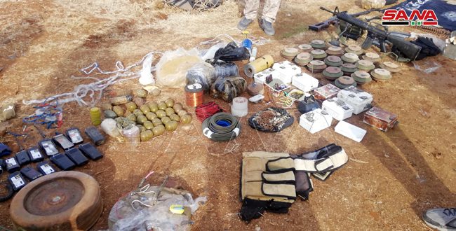 خلال متابعة أعمال تمشيط القرى المحررة من الإرهاب عثرت الجهات المختصة على ألغام متفجرة وسيارة مفخخة ومواد متفجرة من مخلفات الإرهابيين في ريف درعا الشرقي.