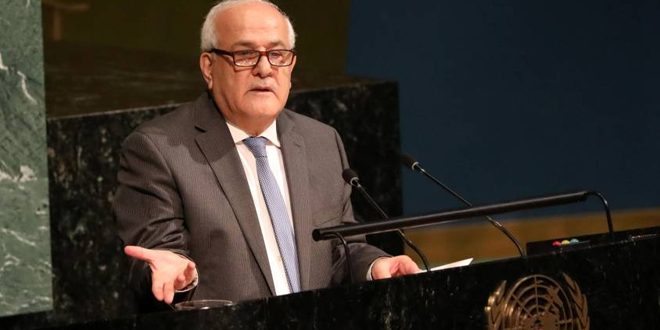 طالب مندوب فلسطين الدائم لدى الأمم المتحدة رياض منصور المجتمع الدولي بتوفير الحماية الدولية للشعب الفلسطيني ومحاسبة سلطات الاحتلال الإسرائيلي على جرائمها بحقه.