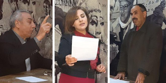 واختتم الشاعر الدكتور هيثم المصري اللقاء بقصيدتين غزليتين “سامرت فيك” و”مواسم العشق” تغنى فيهما بجمال المحبوبة وحسنها كما ألقى قصيدة “إلى شهيد” خاطب من خلالها الشهداء الذين عانقت جباههم السماء وبذلوا روحهم ليحيا الوطن.