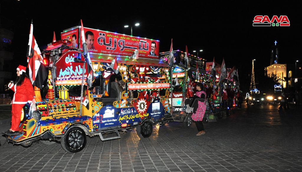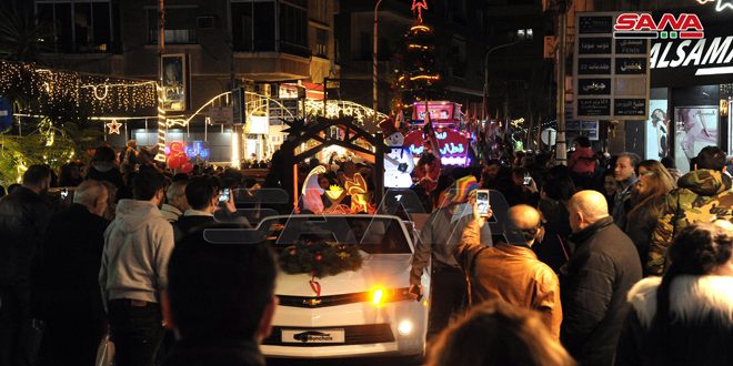 تحت عنوان “سورية ميلادك سلام” نظمت الفرقة العامة للموسيقا “كشاف الزيتون” للروم الملكيين الكاثوليك مساء اليوم كرنفالاَ بمناسبة عيد الميلاد المجيد جاب طرقات مدينة دمشق ابتداء من كاتدرائية سيدة النياح البطريركية مرورا بساحة باب توما والقصاع وصولا إلى ساحة العباسيين.